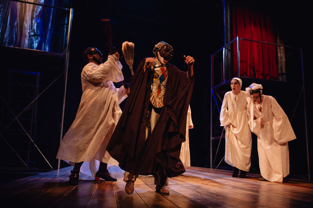 The play Arlecchino and the Lost Love has a Shakespearian beginning: two young people fall in love in secret.  To fool their discontent parents, they decide to rely on a potion that simulates the death of the one who drinks it. This way they have time to organize their getaway. However, time mismanagement and clumsy servants cause a night full of mix-ups and pranks. At the break of dawn everything falls in its place, and the lovers are finally able to have their wedding.