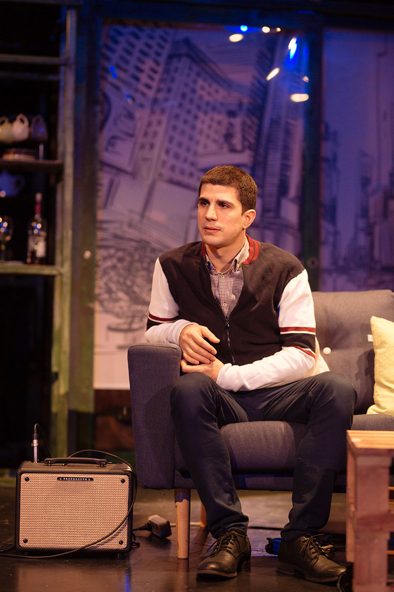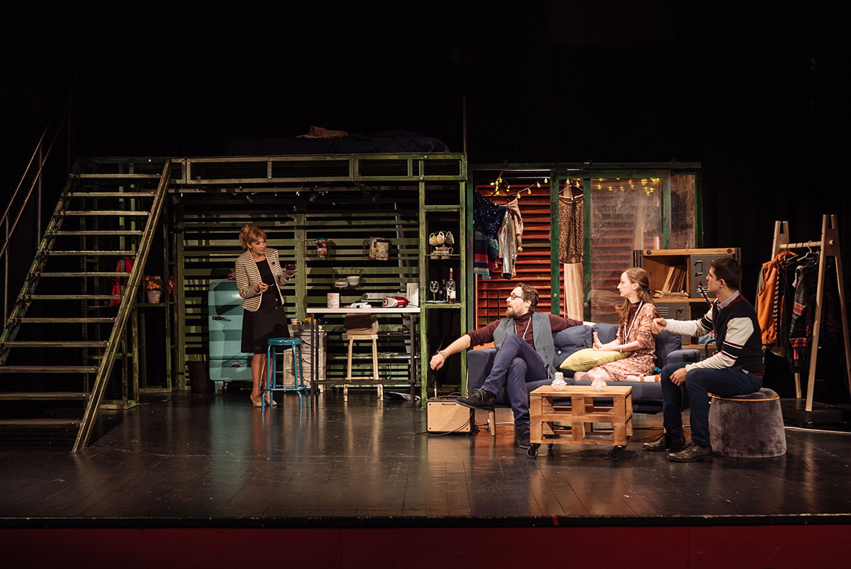 … Alex Călin are naturaleţea necesară şi inteligenţa care-l îndrumă corect spre o interpretare fără accente realiste privind ilustrarea handicapului. O bună parte din spectacol nici nu-şi trădează defectul aşa încât surpriza e cu atât mai mare când aflăm că Don nu vede, iar modul cum se autoironizează transmite un îndemn la curaj. Actorul performează, rolul fiind o bună recomandare pentru altele în piese cu oameni din zilele noastre, pentru autenticul din jocul său. Ioana Anastasia Anton are ca de obicei glamour, interpretând-o pe Jill cu dezinvoltură jucăuşă, evitând vulgaritatea care nu se confundă aici cu un mod frust de abordare. Catrinel Dumitrescu, care-ar fi fost cândva o interpetă perfectă pentru Jill, o joacă la vârsta de acum pe mama modernă, cu o ţinută impecabilă, mizând pe un anume ascendent în relaţia cu fiul ei pe care-l sugerează prin pauze înţelepte şi o prezenţă în general discretă. Jocul ei e elegant şi emană farmecul pe care actriţa l-a avut dintotdeauna. Într-un rol episodic bine prizat din câteva replici apare actorul Şerban Gomoi, din ce în ce mai des distribuit pe scenele bucureştene pe care se impune cu aplomb.