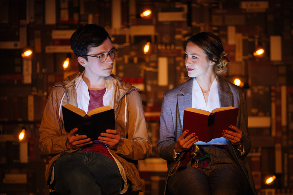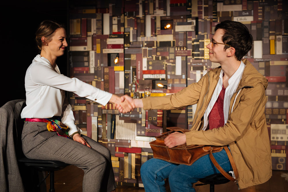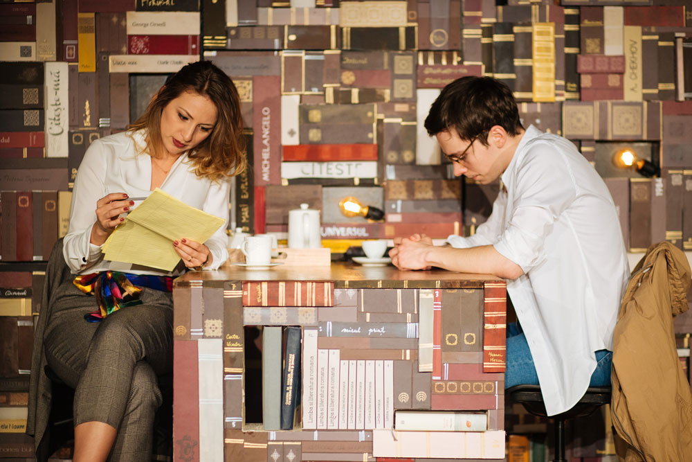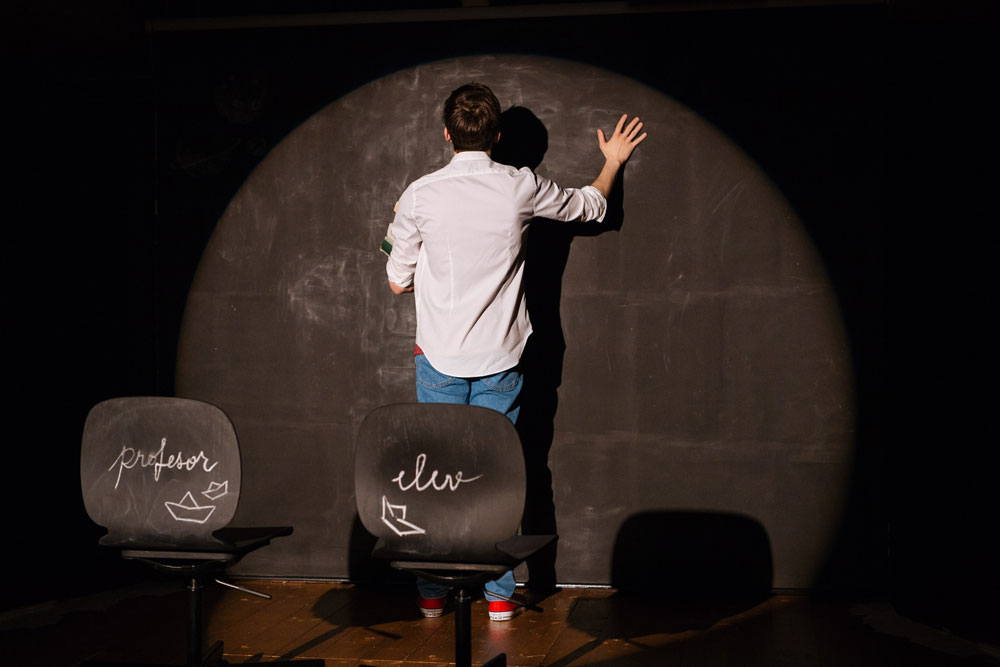 I'm looking to unfold for the audience that gift of never-ending imagination, of dreams, that literature shares with us through every signed story. We become, thus, spectators - witnesses to the building of this so very personal universe, through the two characters, a high school student mere days away from sitting the Baccalaureate, and a professionally undervalued professor but who is still passionate and devoted to her students (…). Sharing a passion for literature, the two manage to gradually build an, idealist, utopian, even, common universe where information becomes a defense mechanism, a refuge from reality and daily worries, but also a weapon against us, as individuals (…). A play that interweaves the real with the fantastic, psychological realism with surrealism - everything around a theme so very present in our lives, and debated - Education