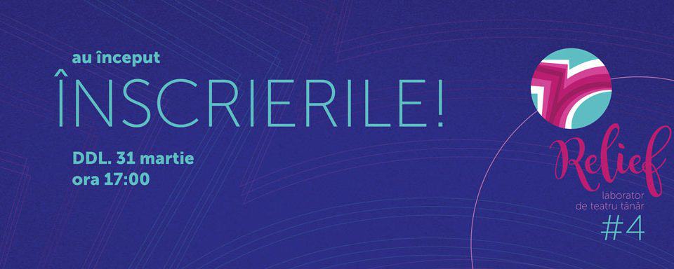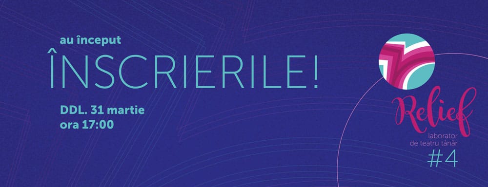 Luni, 4 martie 2019, încep înscrierile pentru cea de-a patra ediție a Laboratorului de teatru tânăr RELIEF, care va avea loc în perioada 15 – 19 mai 2019, la Teatrul EXCELSIOR din București. Se poate înscrie orice trupă de teatru din țară, formată exclusiv din liceeni, și care are în componență minimum doi membri și un coordonator major. Trupele se […]