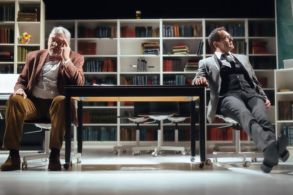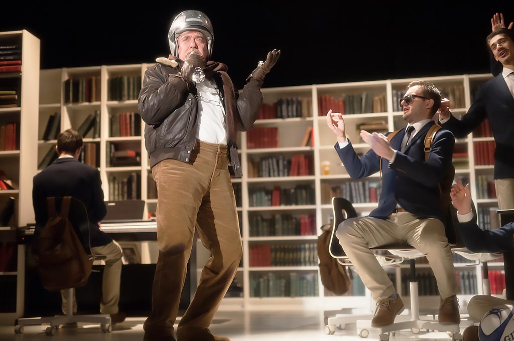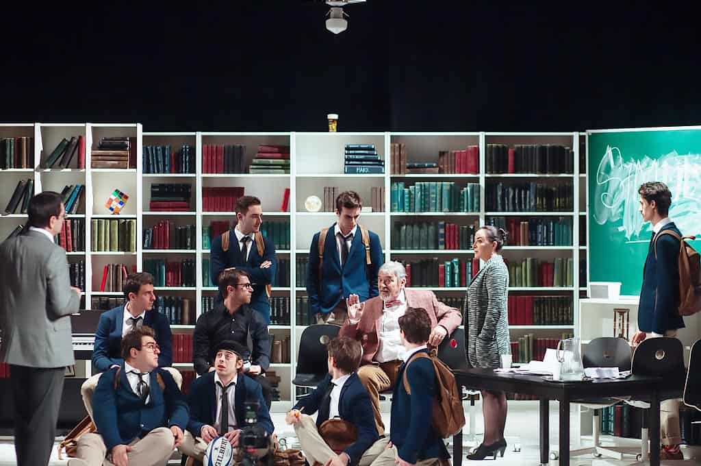 The History Boys se concentrează pe un grup care este exemplar pentru liceeni căci conţine tipologiile clasice – liderul, ratatul, haiosul, talentatul, tocilarul etc. Spectacolul lui Vlad Cristache construieşte acest microunivers într-o sală de clasă ideală, care arată ca o bibliotecă (ce bine ar fi să fie aşa şi în realitate), dar pe care băieţii o folosesc şi ca „scenă“ pentru aplicaţiile practice ale subjonctivului, să zicem. Cele două grupuri, profesori şi elevi, sînt portretizate diferit.